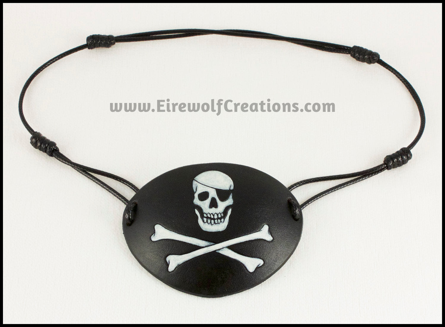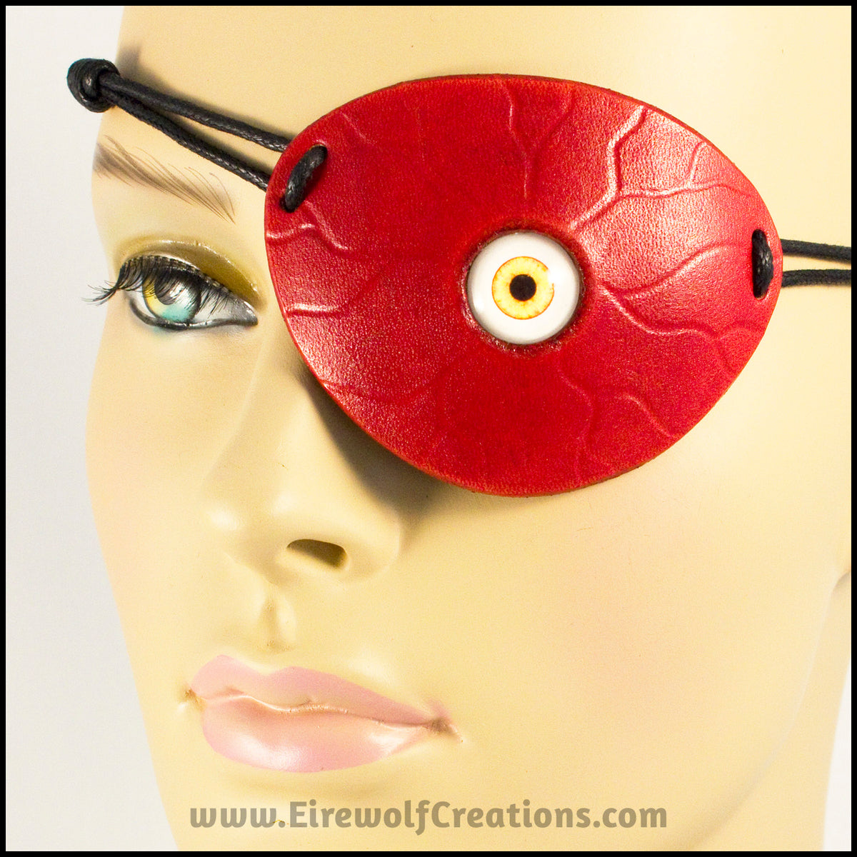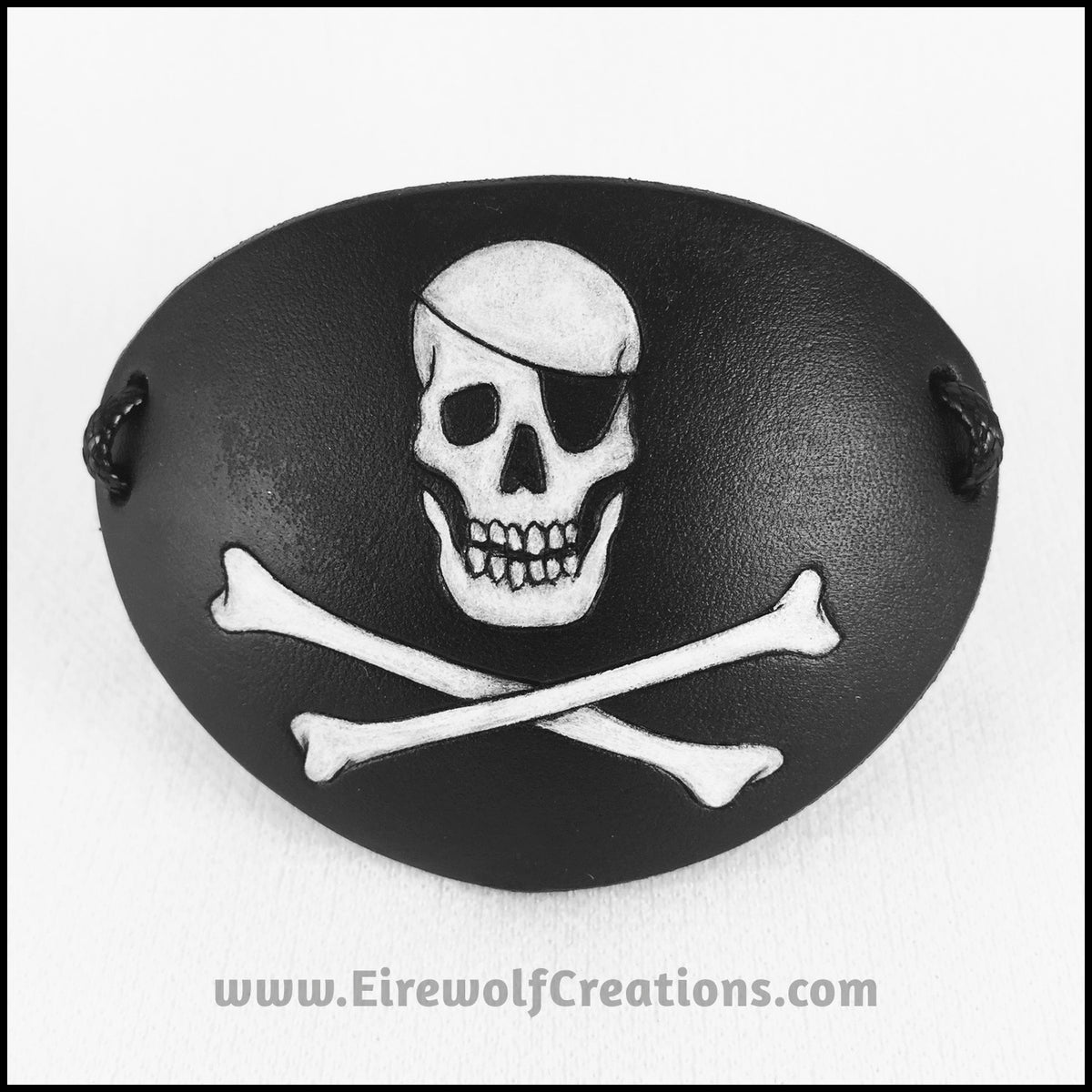 Shop quality leather eye patches for pirate costumes, cosplay, and masquerades, handmade by Eirewolf Creations. "Sold Out" eyepatches may be made to order.